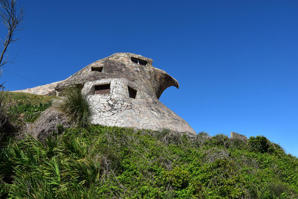Wir runden unseren Wochenendausflug in Atlantida ab; ein Küstenort mit vielen Ferien- und Wochenendhäusern. Wir besuchen das "Adlerhaus" El Aquila, welches majestätisch aufs Meer hinaus äugt, machen einen Strandspaziergang bei kühlem Wind.