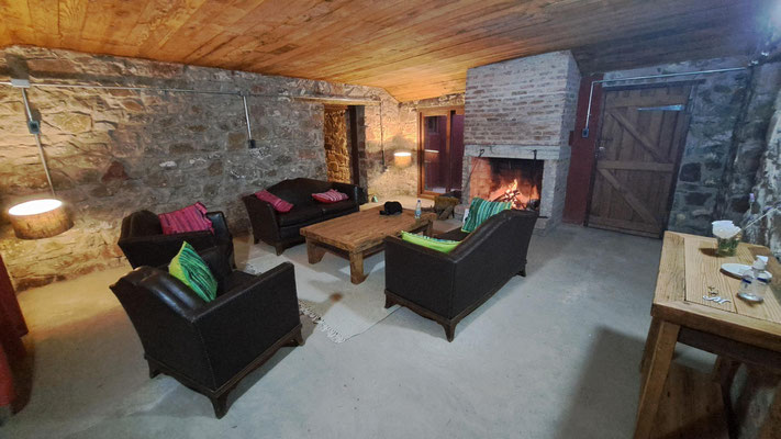 Unser Airbnb ist also ein dunkles, kaltes Steinhaus. Keine Heizung, keine Isolation, der starke Wind rüttelt am Wellblechbach; hat aber durchaus seinen Charme. Wir kaufen uns ein bisschen Brot, Käse, Schinken, Bier und essen vor dem offenen Kaminfeuer. Nachts kriechen wir tief unter die dicken Decken.