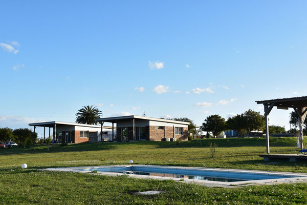 Posada Casavieja ist unser nächstes Ziel. Das ist der Betrieb von Susanne und Ruedi Althaus, die vor ein paar Jahren, begleitet durch die Sendung «Uf u dervo» des Schweizer Fernsehens, nach Uruguay ausgewandert sind. Ihnen statten wir einen spontanen Besuch ab, weil wir «gwundrig» sind. Hinweisschilder an der Strasse fehlen, wir haben aber die Koordinaten. Wir stellen uns vor als «vier von hunderttausenden, die euch am Fernsehen begleitet haben». Klar, wir sind nicht die ersten «Gwundrigen» und hoffen daher, dass wir mit unserem Besuch nicht nerven. Susanne lädt uns sogleich zum Kaffee ein und wir setzen uns zusammen an den Tisch. In den nächsten Stunden erfahren wir viel über Uruguay und wie es den Auswanderern persönlich geht. (Gut!) Wir sagen Susanne zu für ein Vegi Nachtessen und während sie kocht, fahren wir an den Strand des Rio de la Plata und erkunden die 5 Hektaren Land, auf denen sie hier mit ihren zwei Hunden die Posada führen. Zu später Stunde entrichten wir unseren Obolus und dann geht es eine gute Autofahrstunde zurück für die zweite Nacht im kalten Steinhaus in Conchillas. Wir durften eine herzliche Gastfreundschaft erleben.