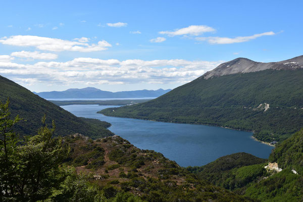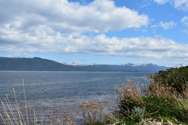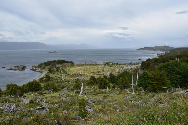 Vorbei am Lago Escondido und über den Paso Garibaldi (425 MüM) kommen wir aus den Bergen heraus und um die letzte Ecke. Wir sehen ein völlig verändertes Ushuaia. Ausufernd auf alle Seiten. Verrückt. Wir suchen uns einen Campingplatz, finden aber nach vier Anläufen keinen. Letztlich weit hinten in einem Tal den Camping Encantada, wo es zumindest eine Dusche und ein WC gibt.